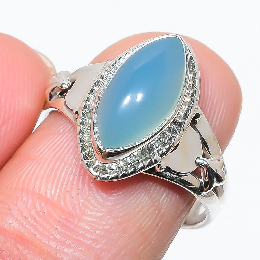 Aquamarine Gemstone Handmade 925 Solid Sterling Silver Jewelry Ring Size 8.5