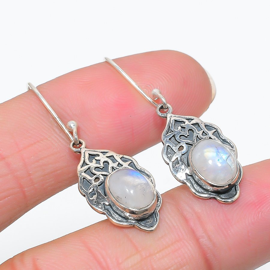 Rainbow Moonstone Gemstone Handmade 925 Sterling Silver Jewelry Earring 1.58