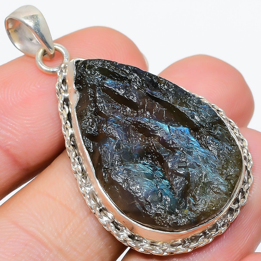 Labradorite Gemstone Handmade 925 Solid Sterling Silver Jewelry Pendant 1.97