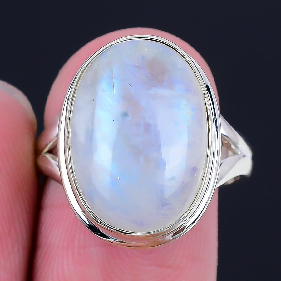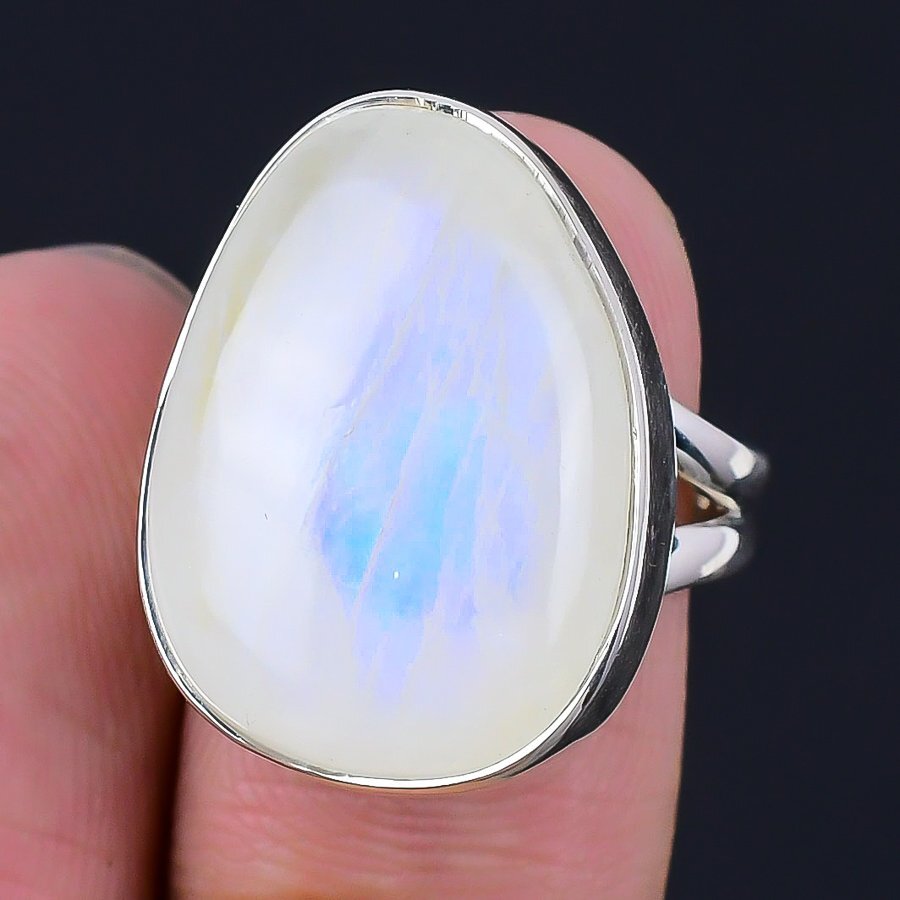 Rainbow Moonstone Ring 925 Solid Sterling Silver Gemstone Jewelry Size 7.5