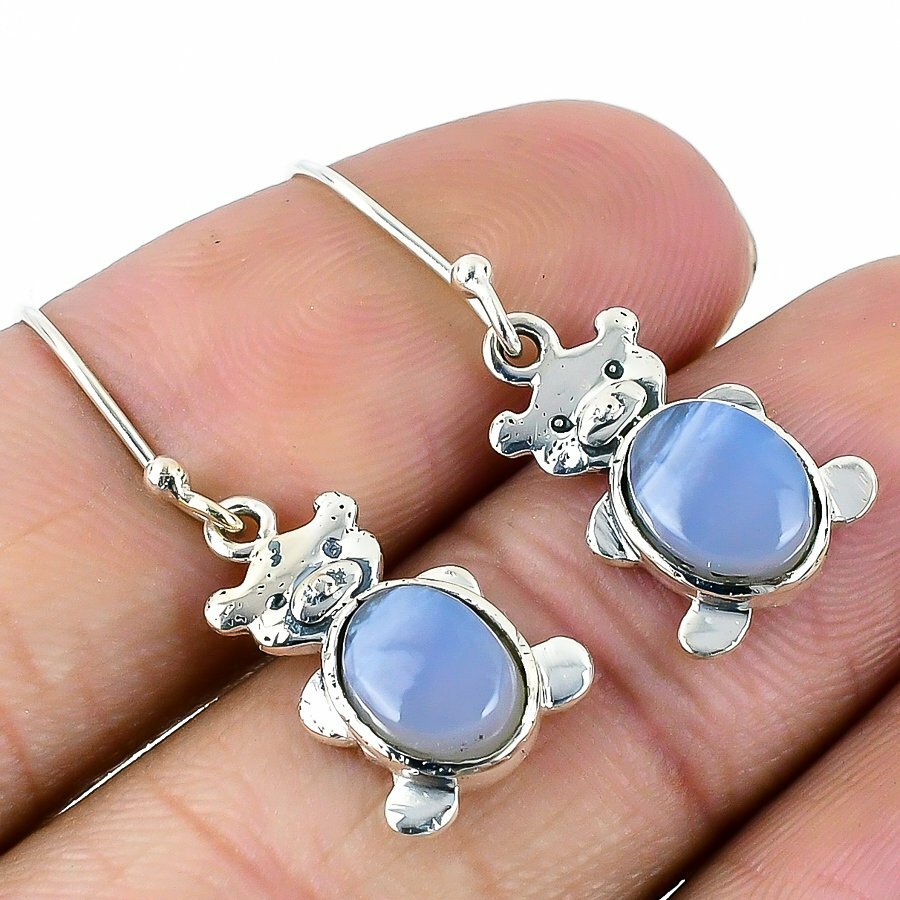 Blue Lace Agate Gemstone 925 Solid Sterling Silver Jewelry Earring 1.38 "