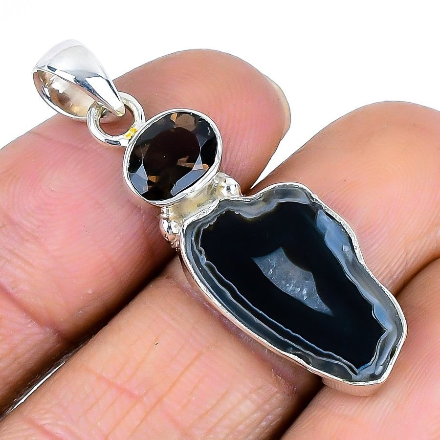 Agate Geode Slice Gemstone Solid Silver Engagement Handmade Art Deco New Pendant