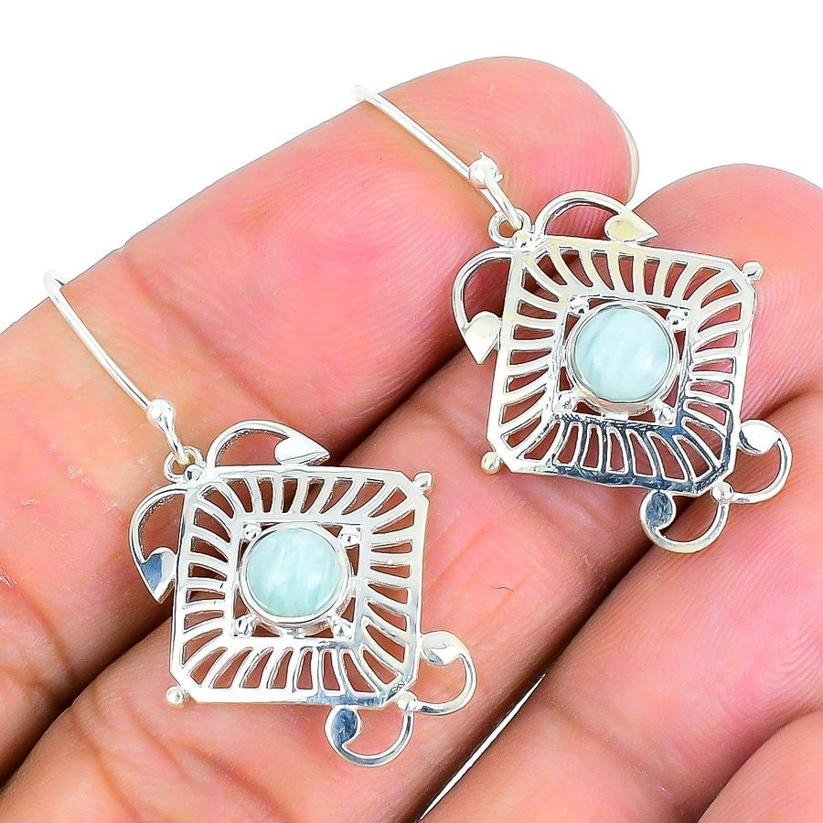 Amazonite Gemstone Solid Sterling Silver Engagement Dangling Birthday Earrings