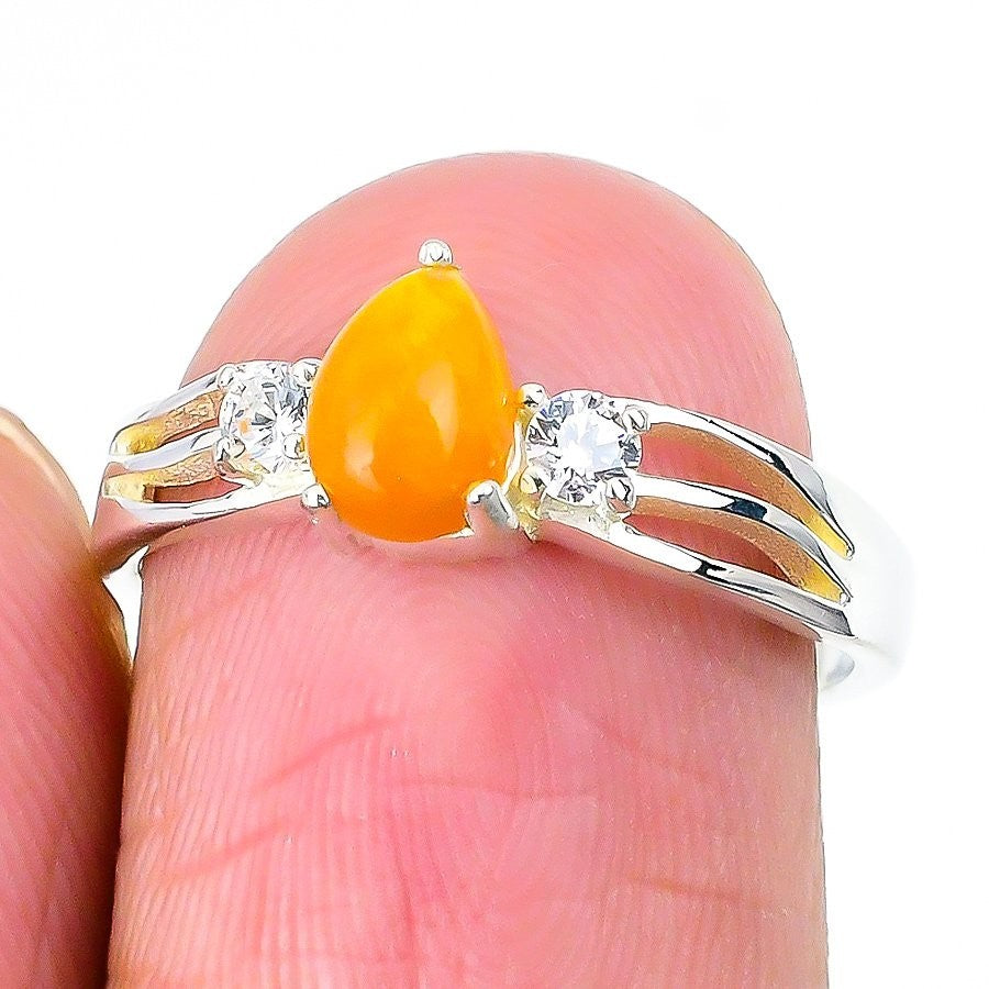 Amber Egg Yolk Stone Sterling Silver Birthday Boho Cluster Mother Ring Size 8