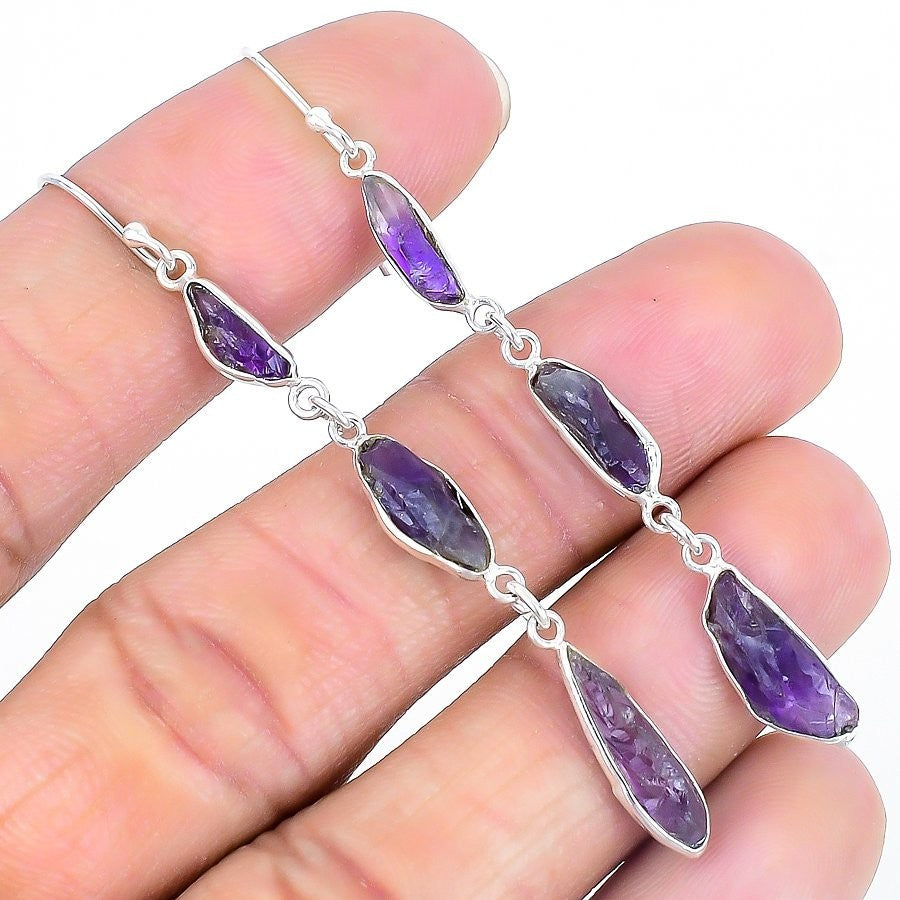 Amethyst Druzy Gemstone Dangle Birthday Daughter Gift Earrings Sterling Silver