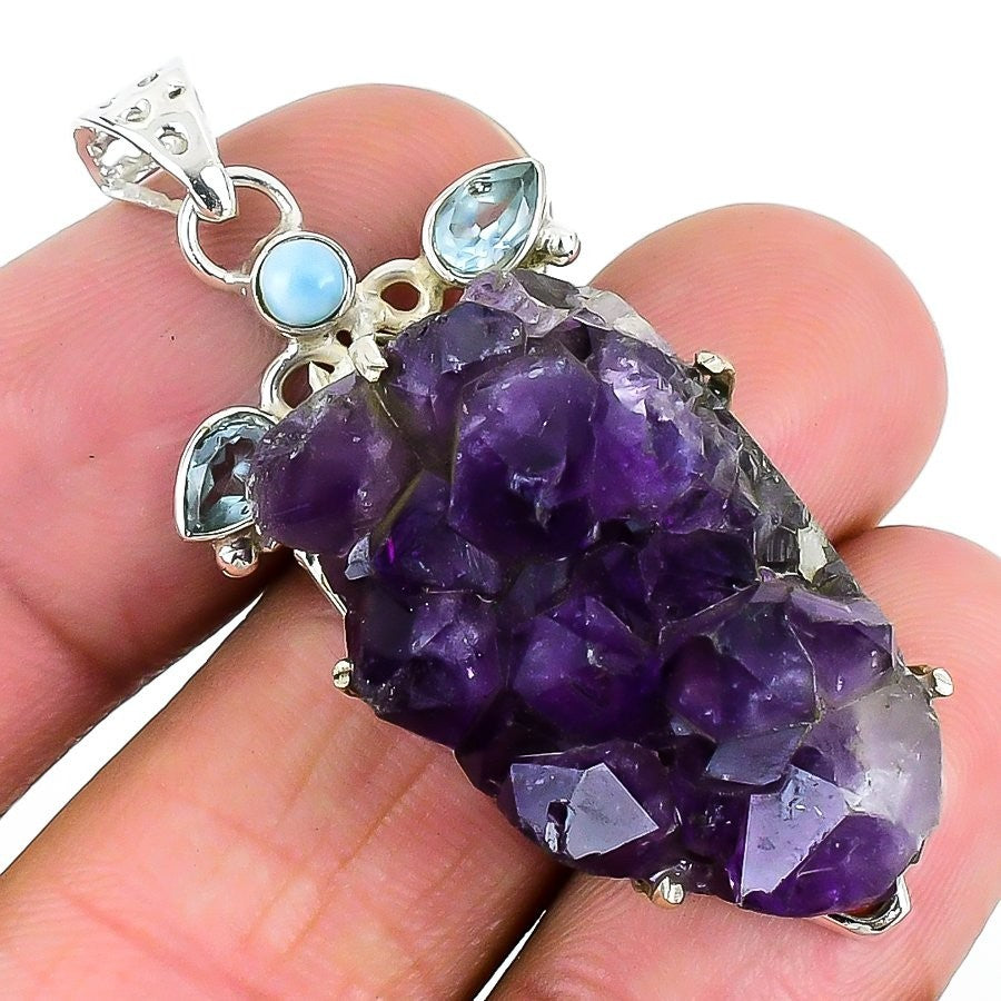 Amethyst Druzy Gemstone Solid Silver Unique Channel Set Mother Trendy Pendant