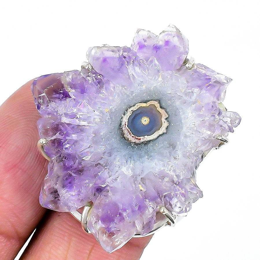 Elegant Amethyst Druzy Salactile Stone 925 Solid Silver in 9