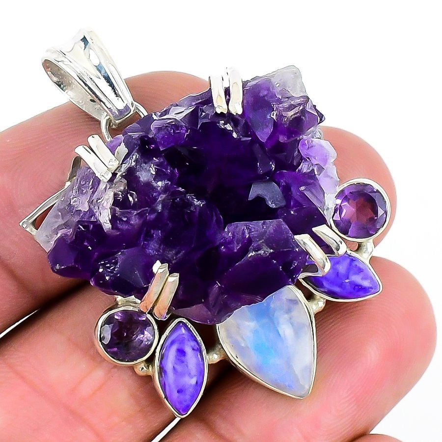 Amethyst Druzy Stone 925 Silver Trendy Best Daughters Gift Wife Pendant Jewelry