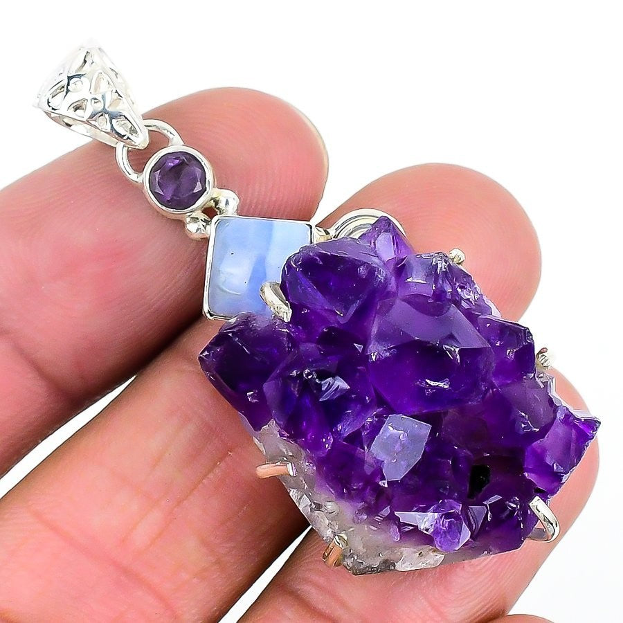 Amethyst Druzy Stone 925 Solid Silver Birthday Daughter Gift New Pendant Jewelry