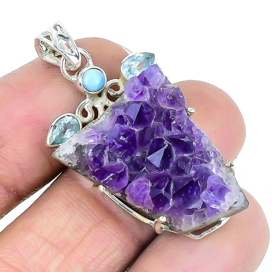 Amethyst Druzy Stone 925 Sterling Silver Artisan Daughter Unique Pendant Jewelry