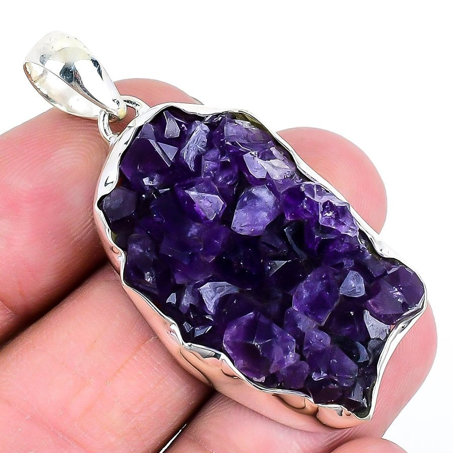 Amethyst Druzy Stone Bezel Unique Handmade Engagement Pendant Jewelry 925 Silver