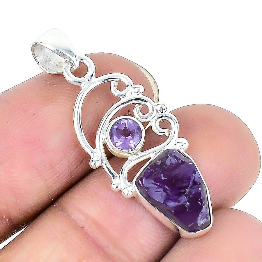 Amethyst Druzy Stone Engagement Daughter Birthday Boho Pendant 925 Solid Silver