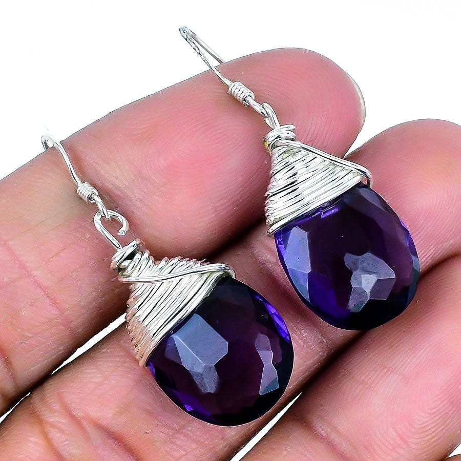 Elegant Amethyst Faceted Gemstone Drop Dangle Wife Earrings