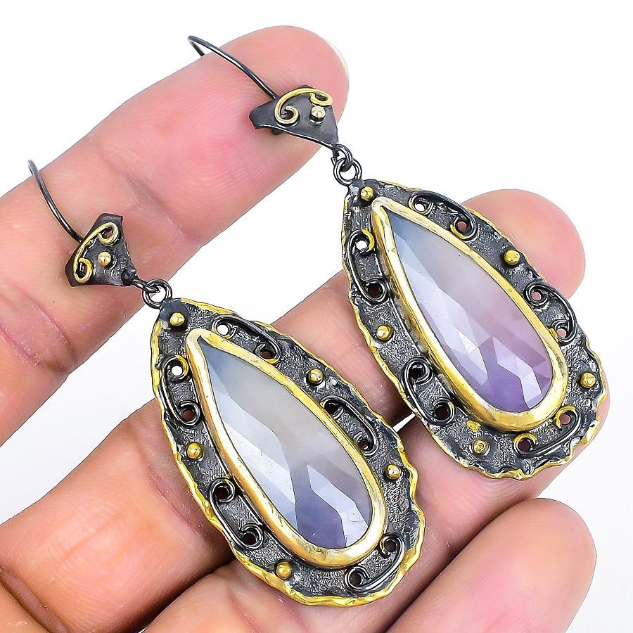 Amethyst Faceted Gemstone Solid Sterling Silver Drop Dangle Anniversary Earrings