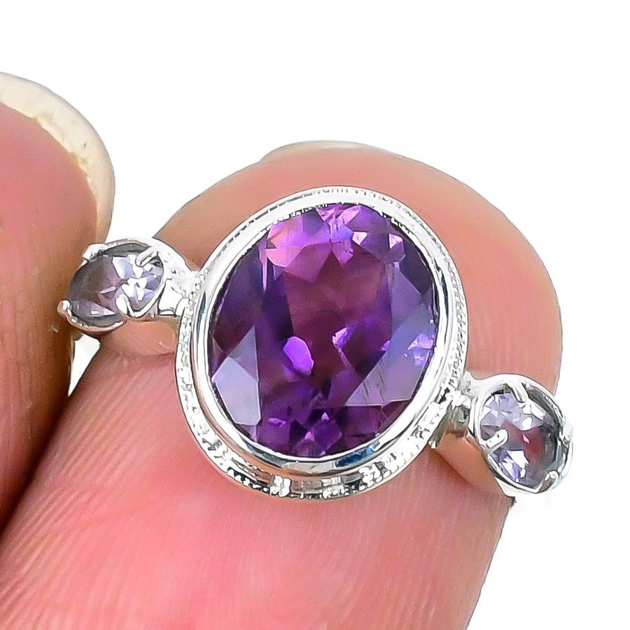 Amethyst Faceted Gemstone Solid Sterling Silver Statement New Ring Jewelry US 5