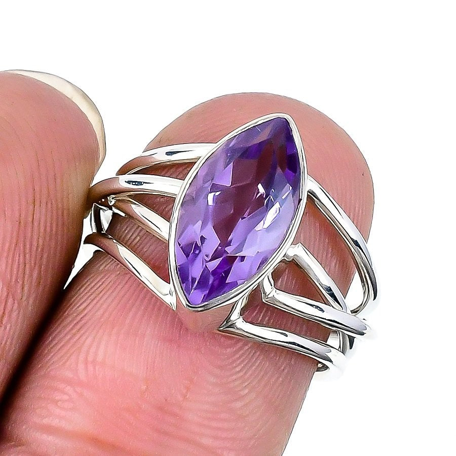 Elegant Amethyst Faceted Stone 925 Silver Handmade Wedding i