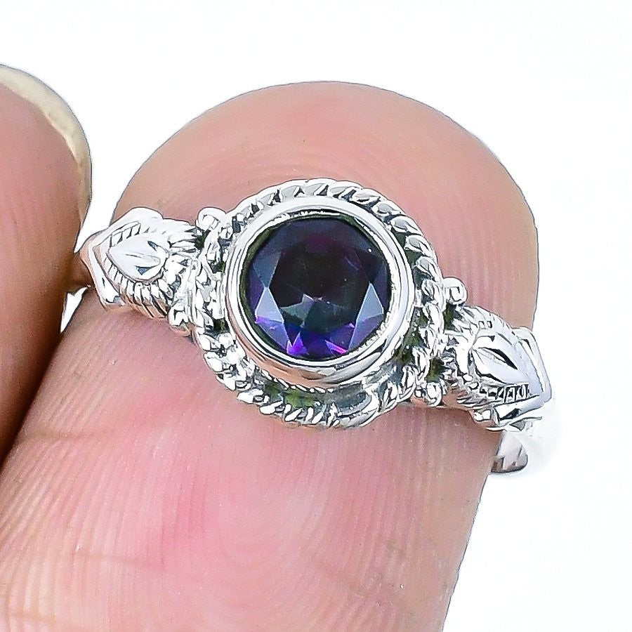 Amethyst Faceted Stone Statement Daughters Day Ring Jewelry 925 Silver US 7.5
