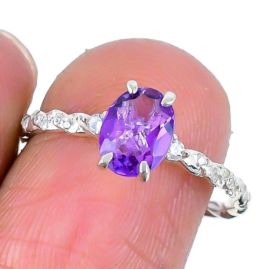 Amethyst Faceted Stone Wedding Statement Ring Jewelry 925 Sterling Silver US 8