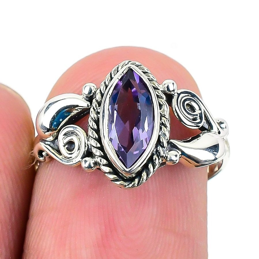 Amethyst Gemstone Statement February Birth Engagement Ring Solid Sterling Silver