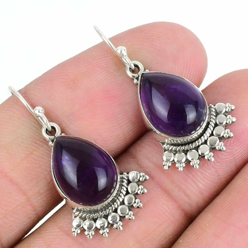 Amethyst Gemstone Sterling Silver Daughters Day Drop Dangle Engagement Earrings