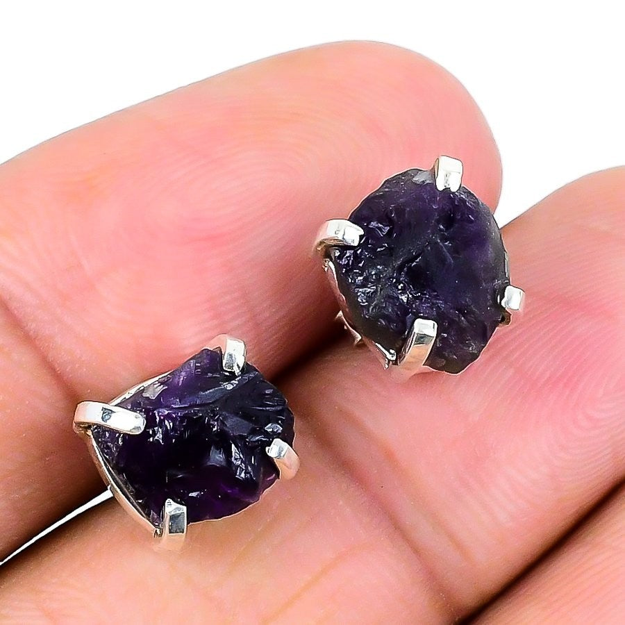 Amethyst Rough Gemstone Trendy Stud Post Earrings Jewelry 925 Sterling Silver