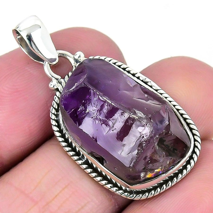 Amethyst Rough Stone 925 Sterling Silver Anniversary Handcrafted Ethnic Pendant