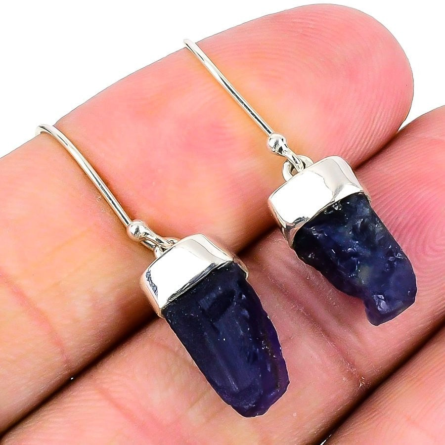 Amethyst Rough Stone Solid Sterling Silver Drop Dangle February Earrings Jewelry
