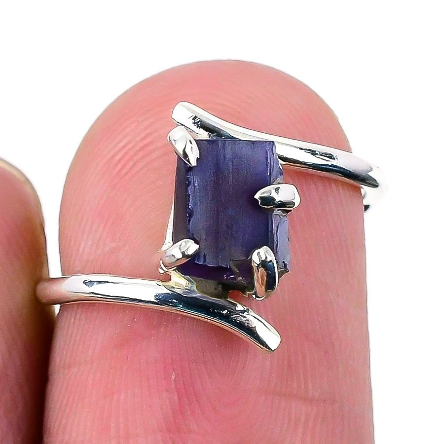 Amethyst Rough Stone Solid Sterling Silver February Statement Ring Jewelry US 6