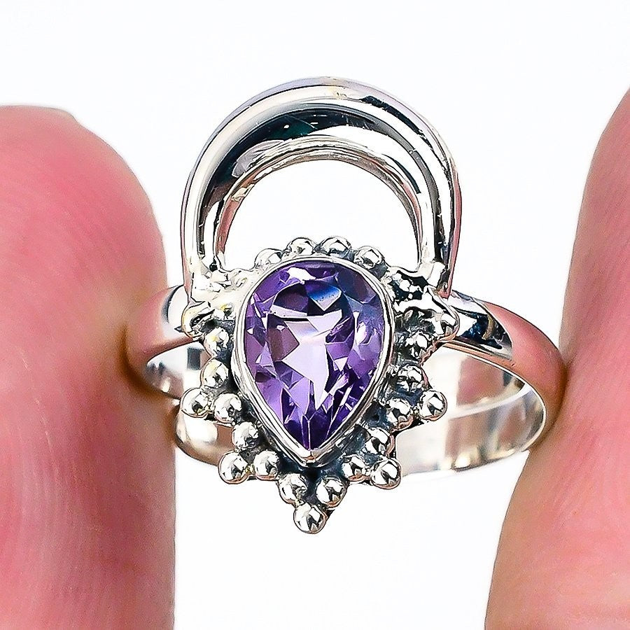 Amethyst Stone Mother Birthday Cluster February Handmade Ring Jewelry 925 Silver