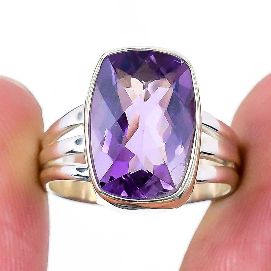 Amethyst Stone Statement Birthday Best Sisters Gift Wife Ring Solid Silver US 7