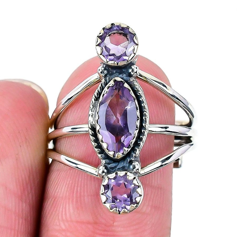 Amethyst Stone Wife Boho Cluster Channel Set Sisters Day Ring 925 Solid Silver
