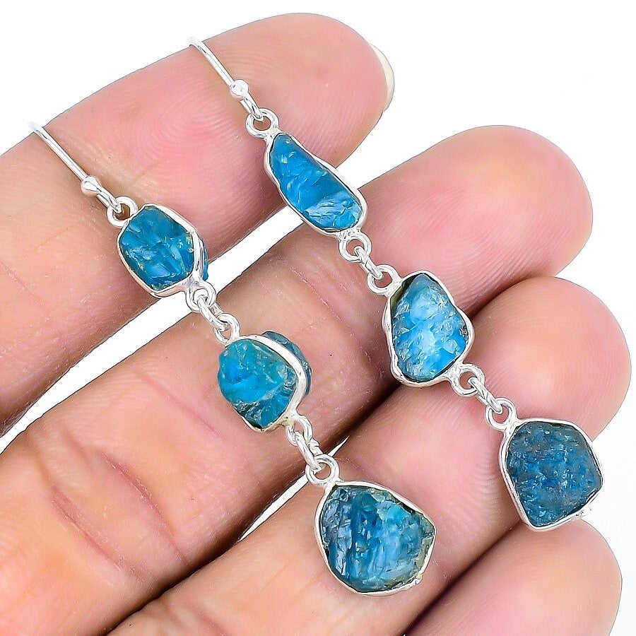 Apatite Druzy Gemstone Art Deco Ethnic Drop Dangle Earrings Jewelry 925 Silver
