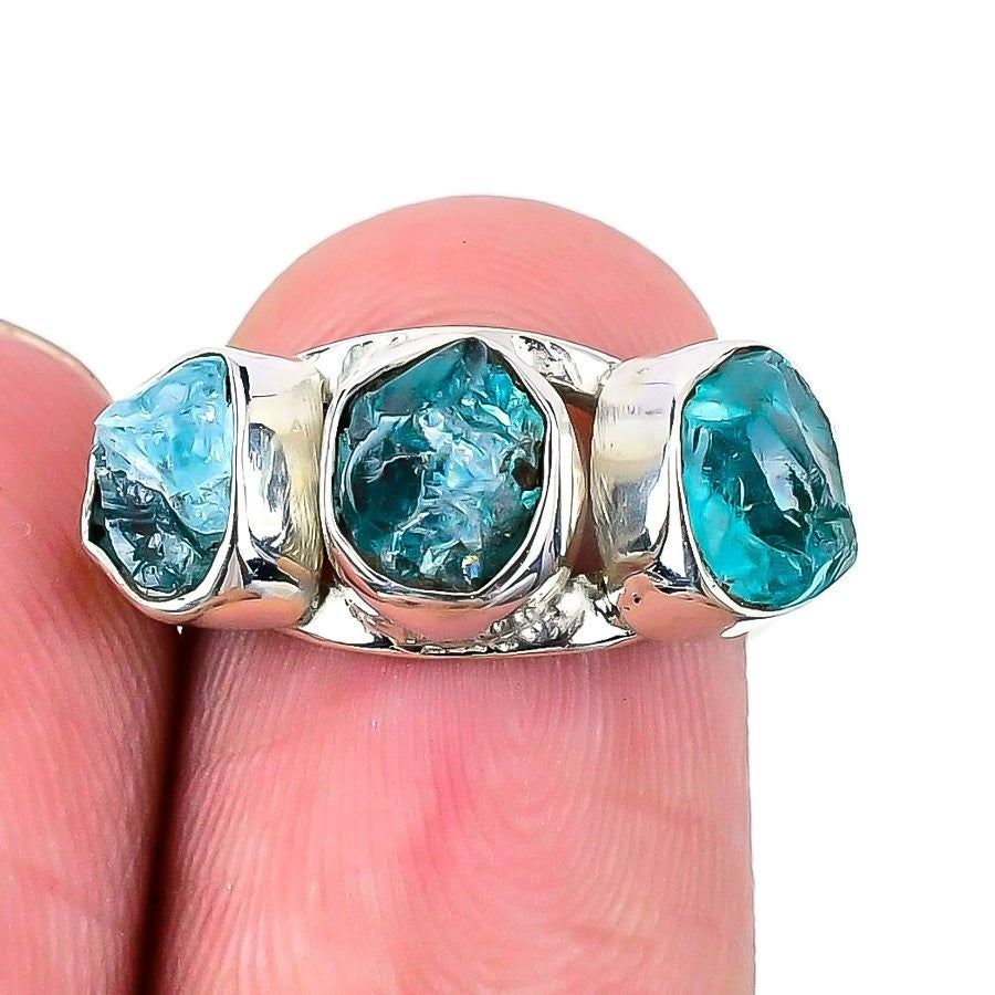 Aqua Apatite Gemstone Solid Sterling Silver Statement Wife Ring Jewelry Size 5.5