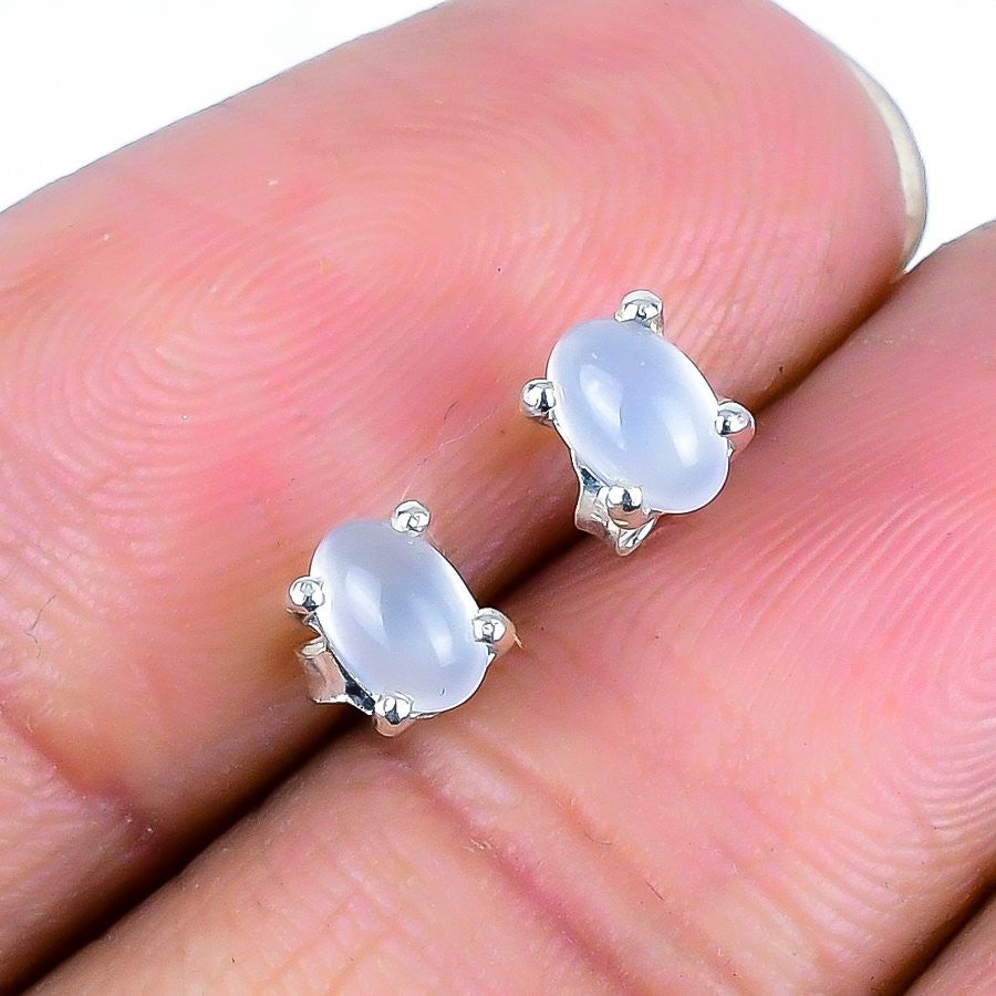 Aqua Chalcedony Gemstone 925 Solid Silver Wife Wedding Stud Post New Earrings