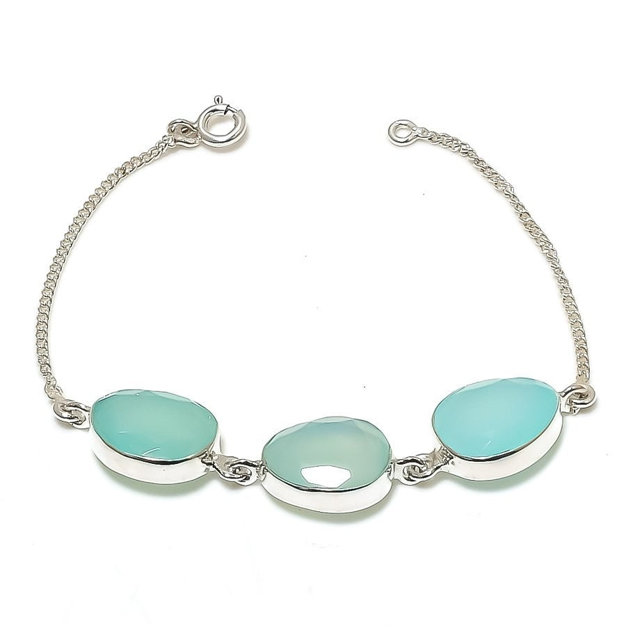 Aqua Chalcedony Gemstone Solid Sterling Silver Birthday Chain Handmade Bracelet