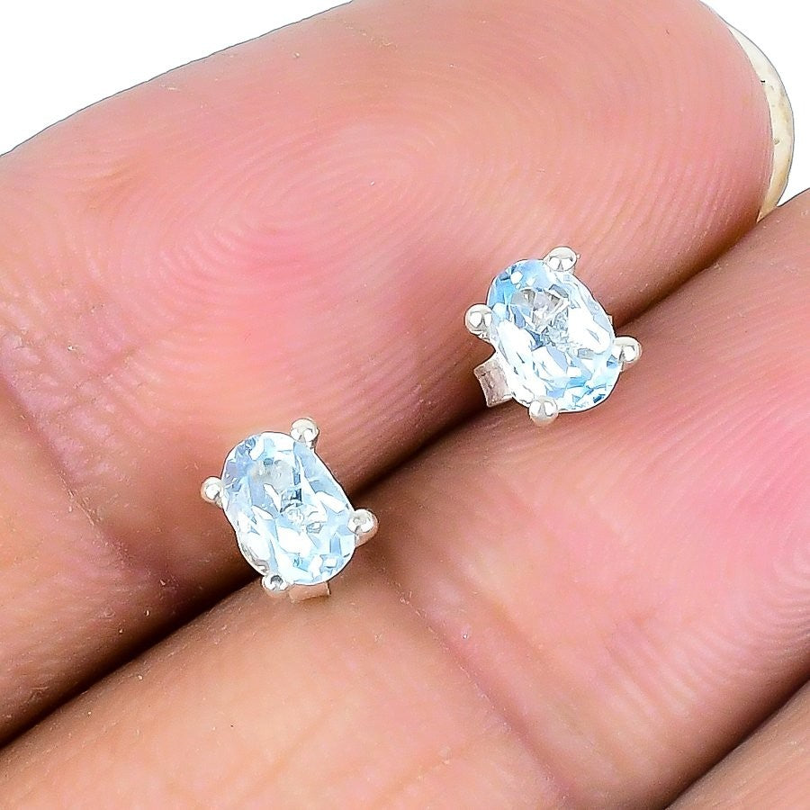 Aqua Topaz Stone 925 Silver Leverback New Stud Post Handmade November Earrings