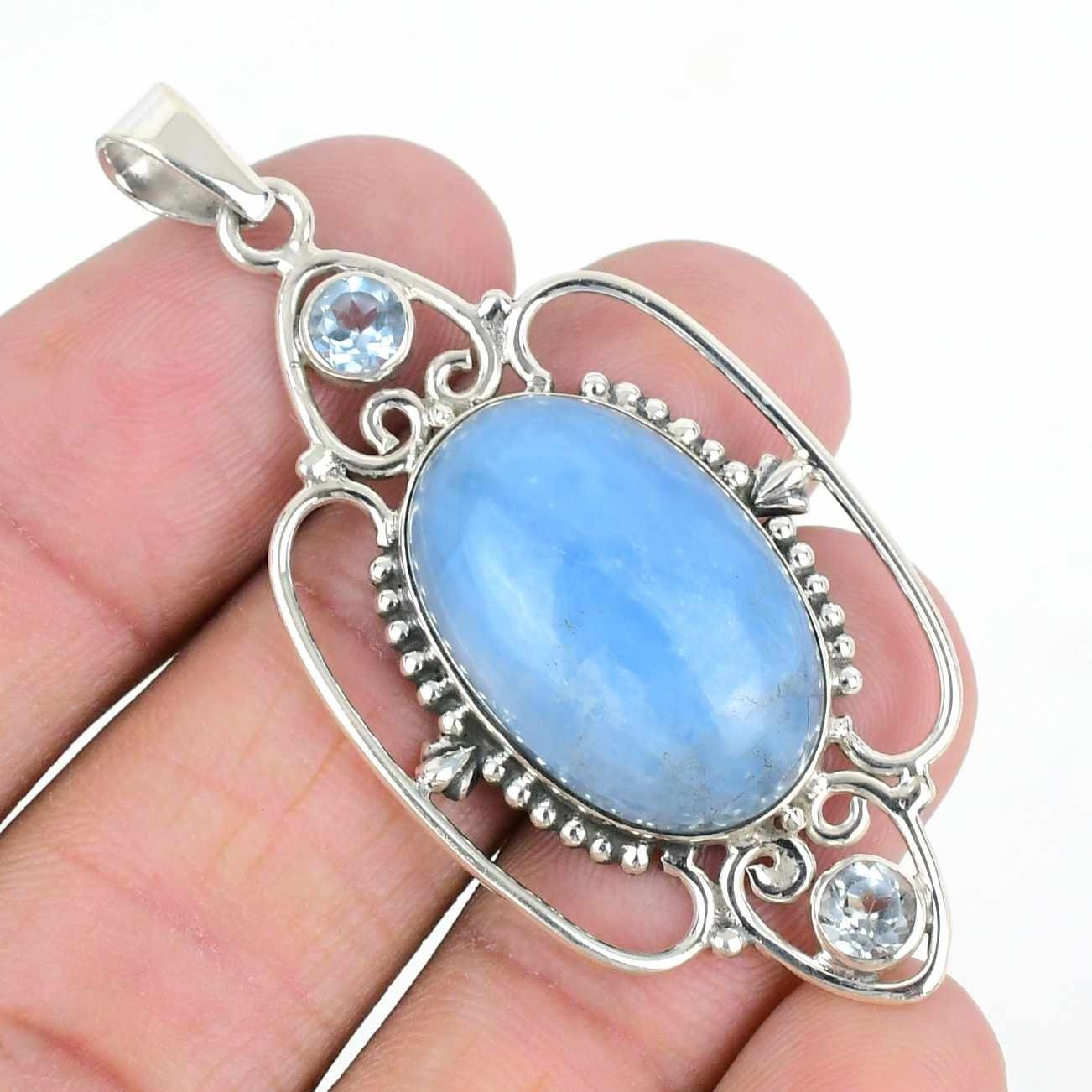 Aquamarine & blue topaz Gemstone Sterling Silver Wedding Anniversary New Pendant