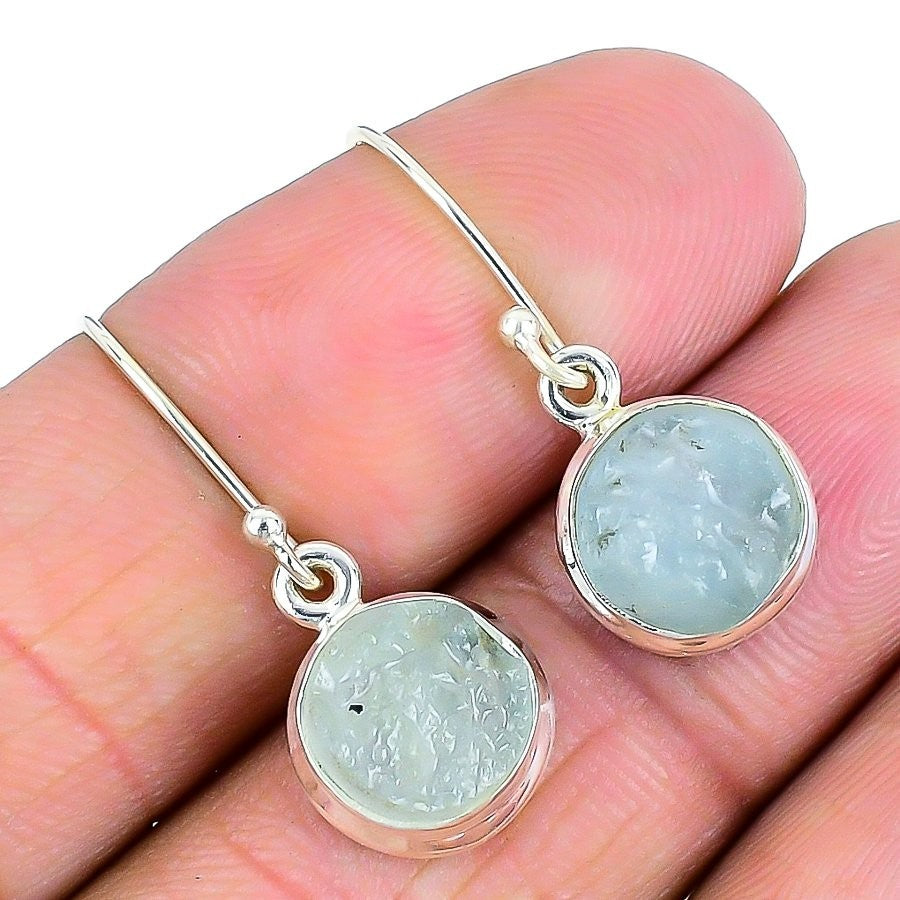 Aquamarine Drusy Gemstone 925 Solid Silver Stud Post Daughter March New Earrings