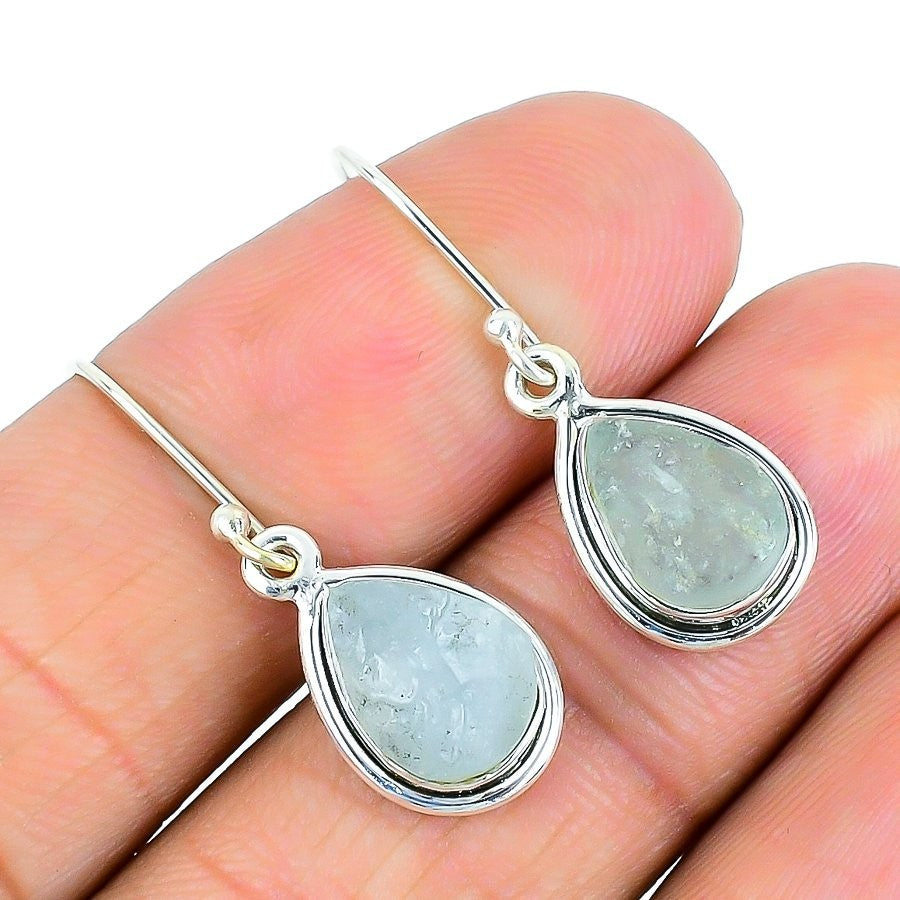 Aquamarine Drusy Gemstone Stud Post Handmade Artisan Earrings Jewelry 925 Silver