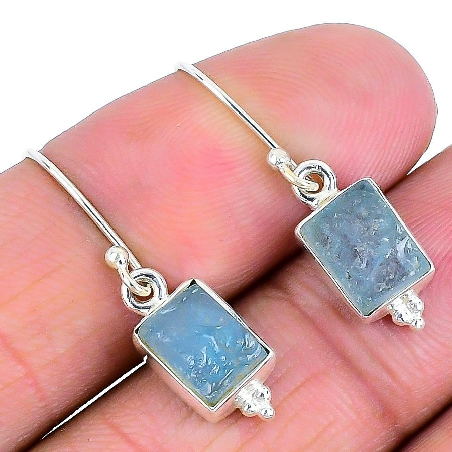 Aquamarine Drusy Stone 925 Solid Silver Engagement Stud Post Earrings Jewelry