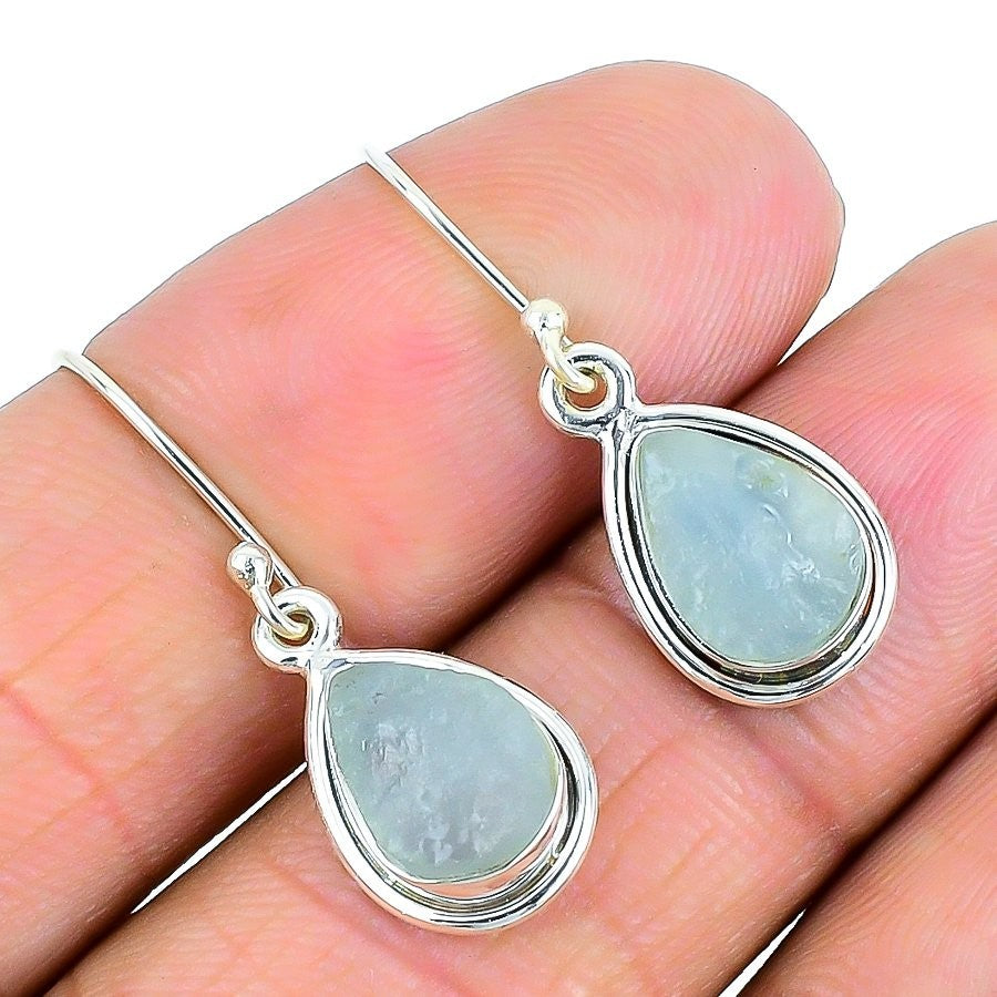 Aquamarine drusy Stone Sterling Silver Mother Stud Post Birthday Unique Earrings