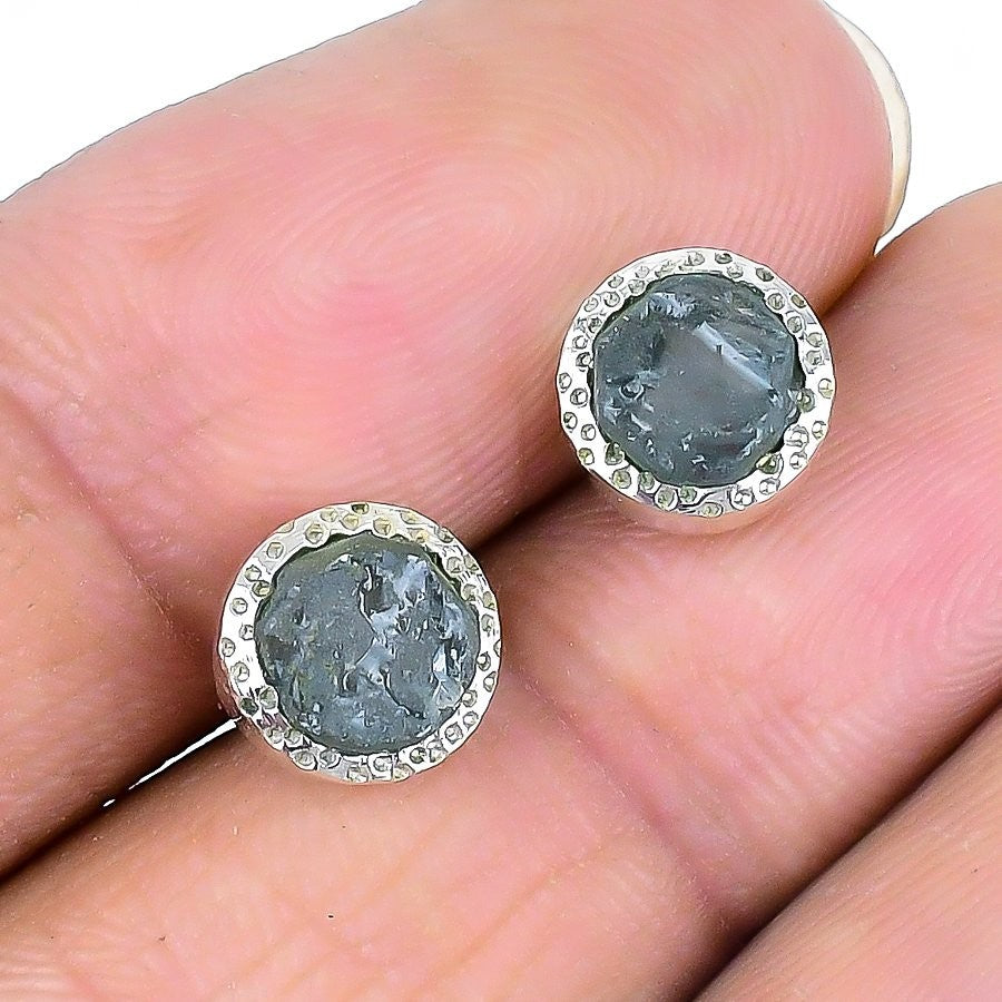 Elegant Aquamarine Druzy Gemstone Solid Silver Boho Stud in