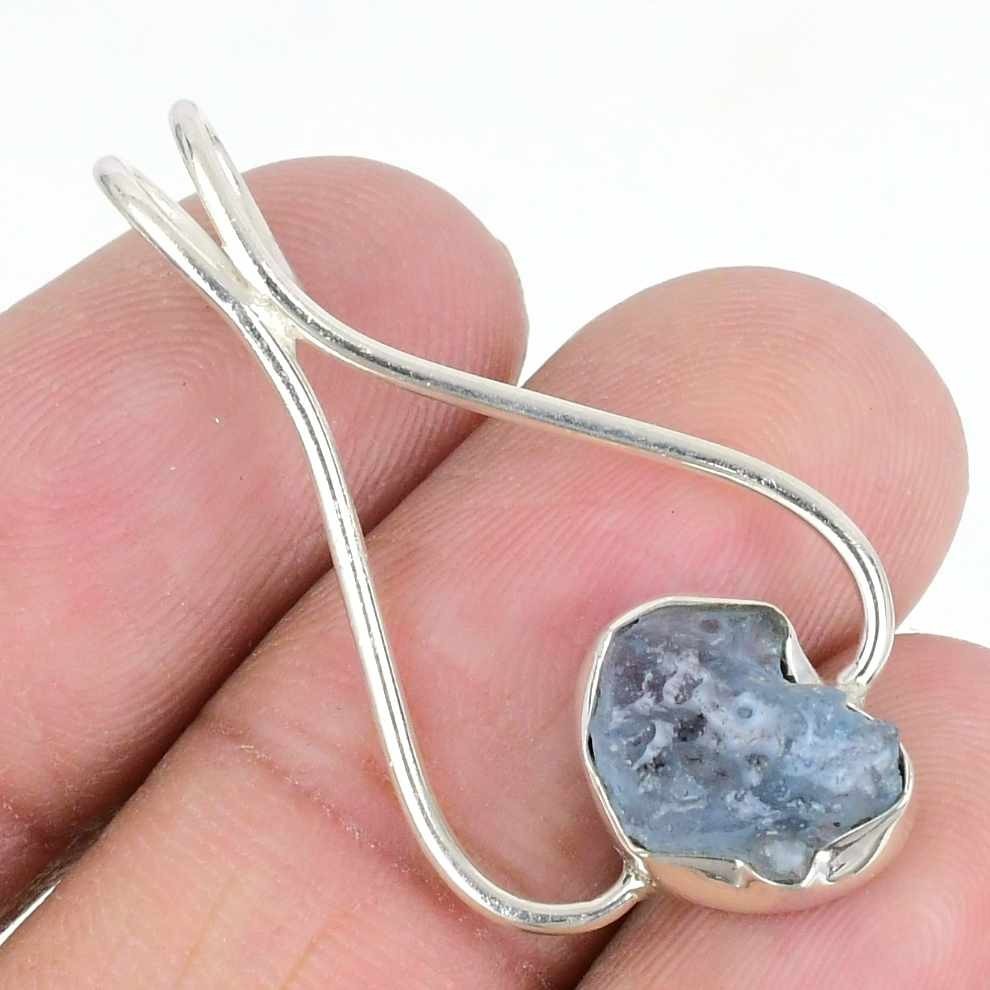 Aquamarine Druzy Stone 925 Silver Best Daughters Gift Engagement Pendant Jewelry