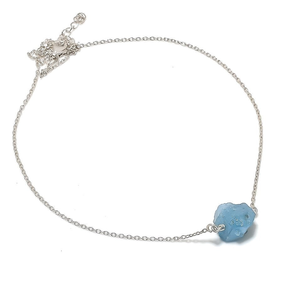Aquamarine Druzy Stone 925 Solid Silver Birthday Daughter Chain Wedding Necklace