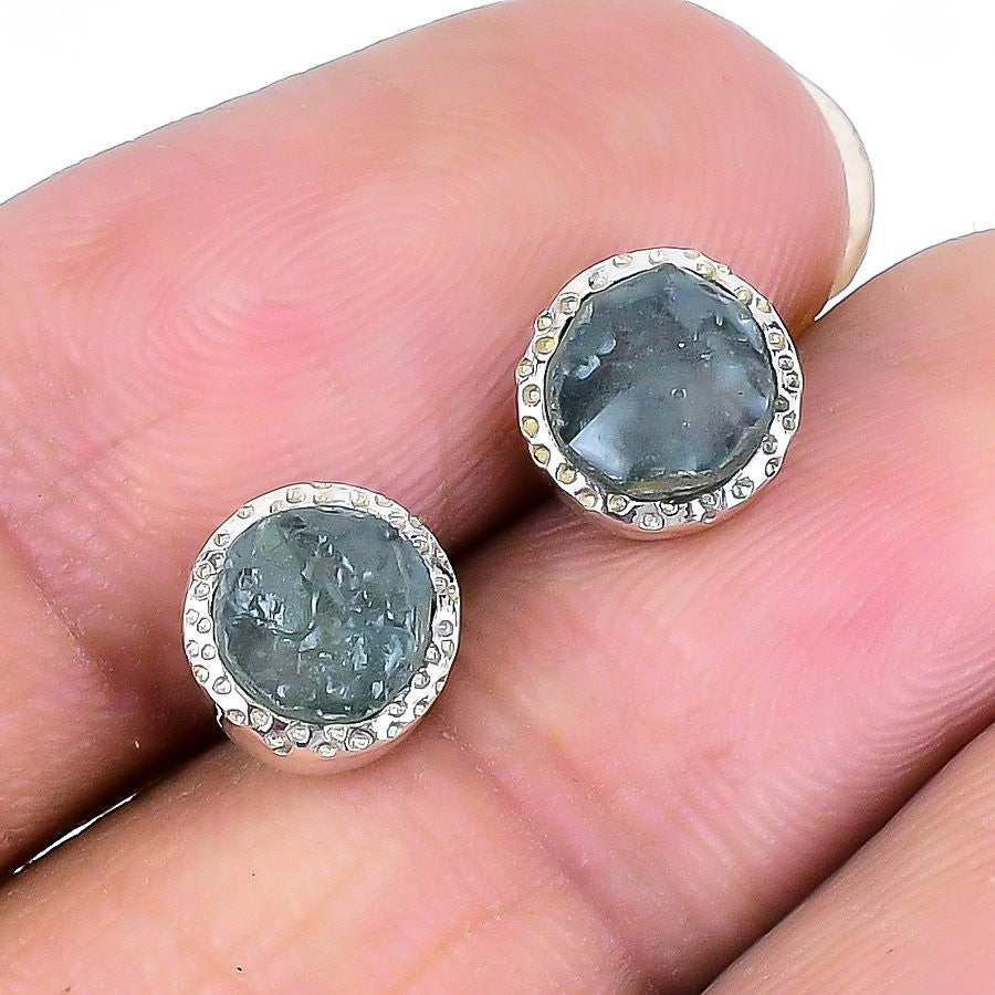 Aquamarine Druzy Stone Anniversary Stud Unique Engagement Earrings Solid Silver