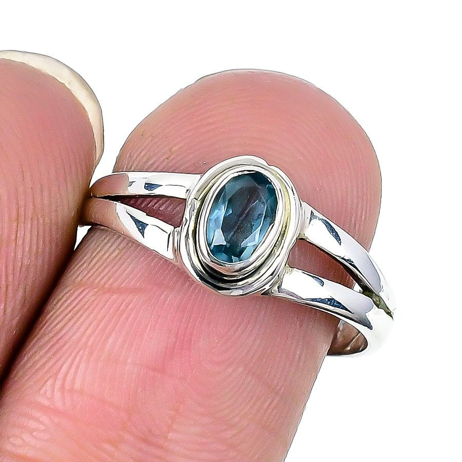 Aquamarine Faceted Gemstone 925 Sterling Silver Mother Statement Ring Jewelry