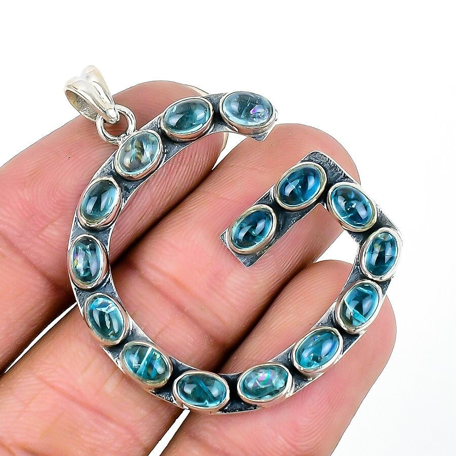 Aquamarine G Gemstone 925 Solid Silver Birthday Ethnic Unique Pendant Jewelry