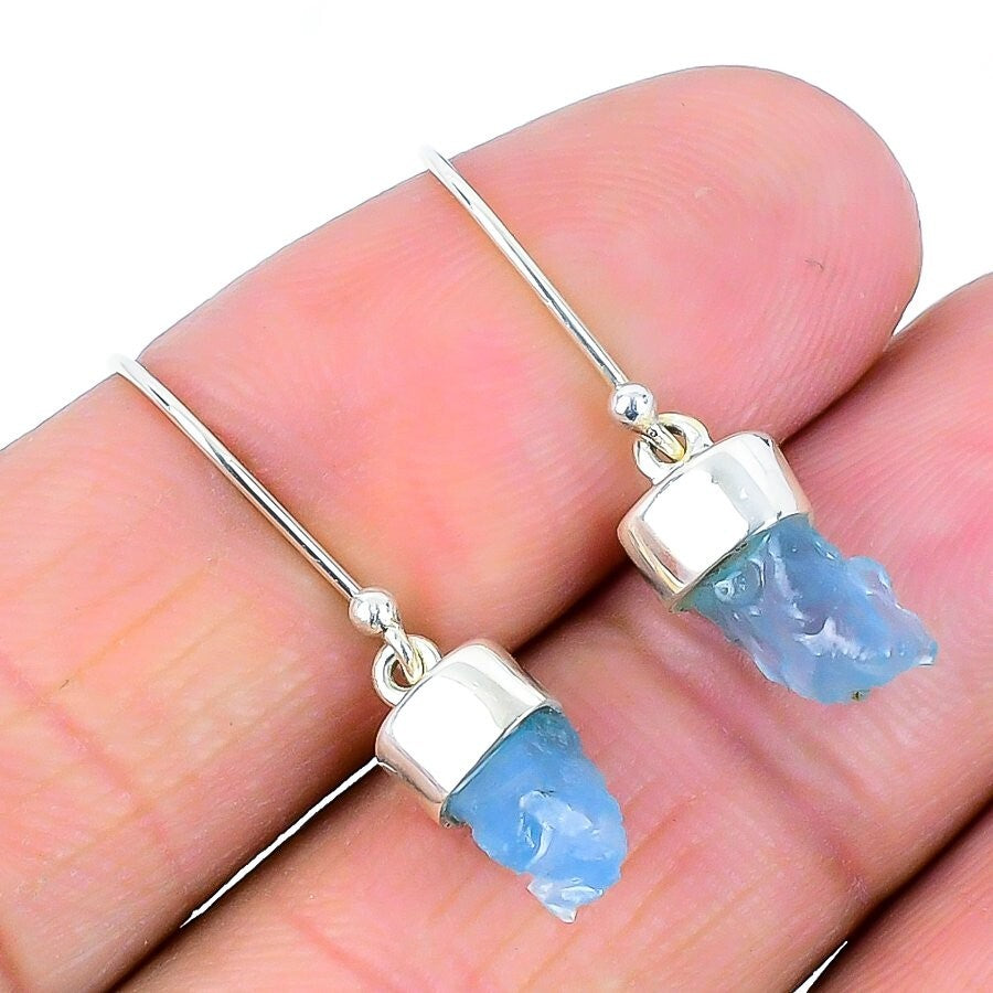 Elegant Aquamarine Gemstone 925 Silver Hook Boho Dangle in 9
