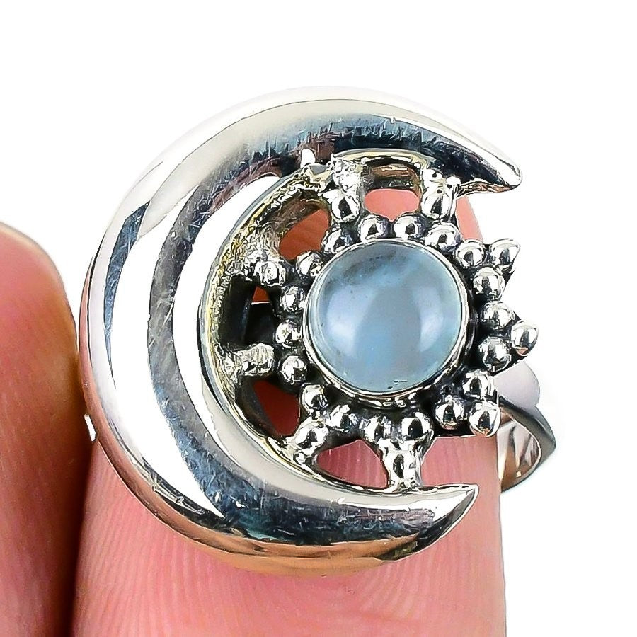 Aquamarine Gemstone 925 Silver Statement Throat Chakra Best Friend Gift New Ring