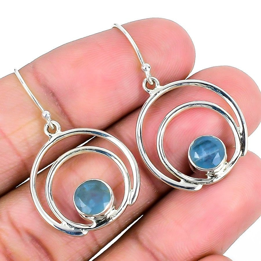Aquamarine Gemstone Birthday Dangling Hook Engagement Earrings 925 Solid Silver